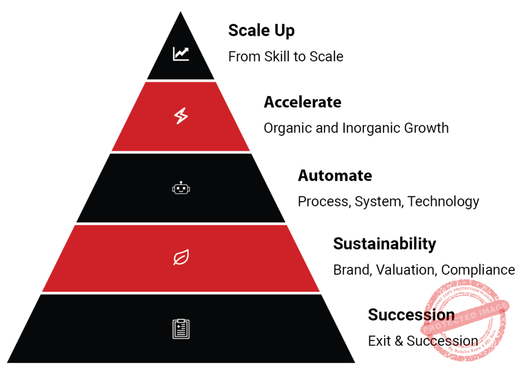 Mindset shift from founder-led practice to system-led business. Develop clear Vision, Mission & Culture frameworks.
